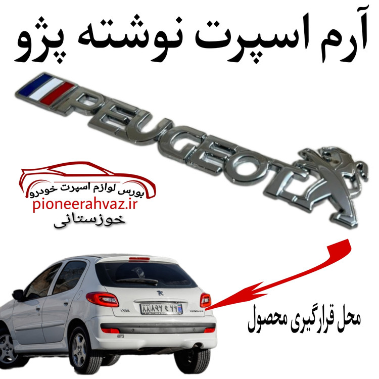 آرم نوشته پژو لوگو دار پرچمی ( نوشته پژو + لوگو شیر پژو + پرچم فرانسه ) مناسب درب صندوق عقب و رو گلگیر می باشد . جلوه ی زیبا و طراحی جدیدی دارد .