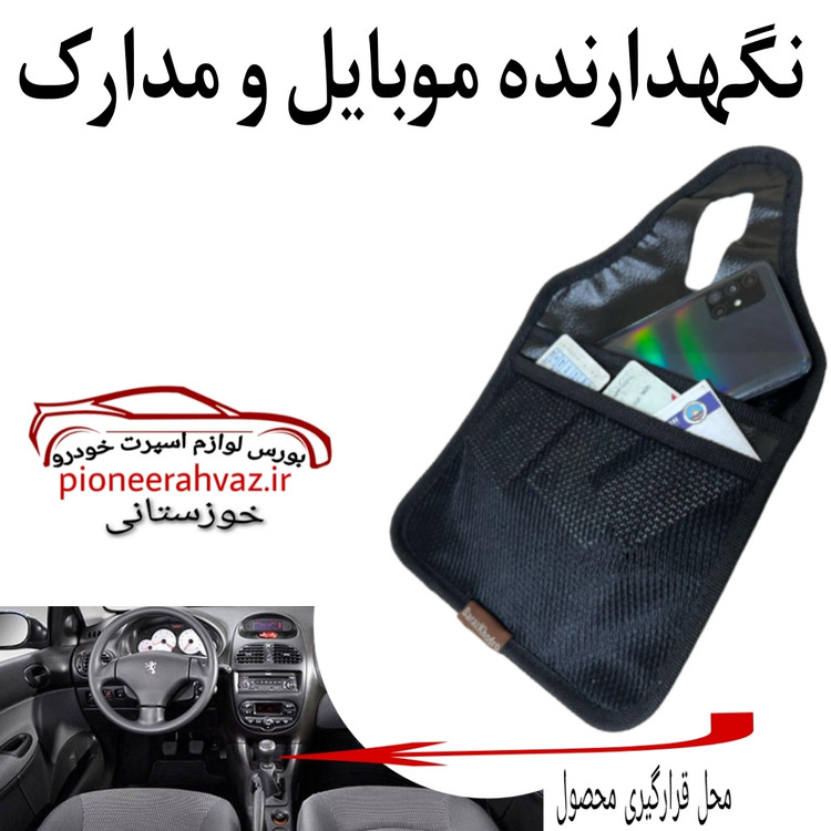 نگهدارنده موبایل و مدارک چرمی مشکی: این قطعه در دنده اتومبیل قرار می گیرد