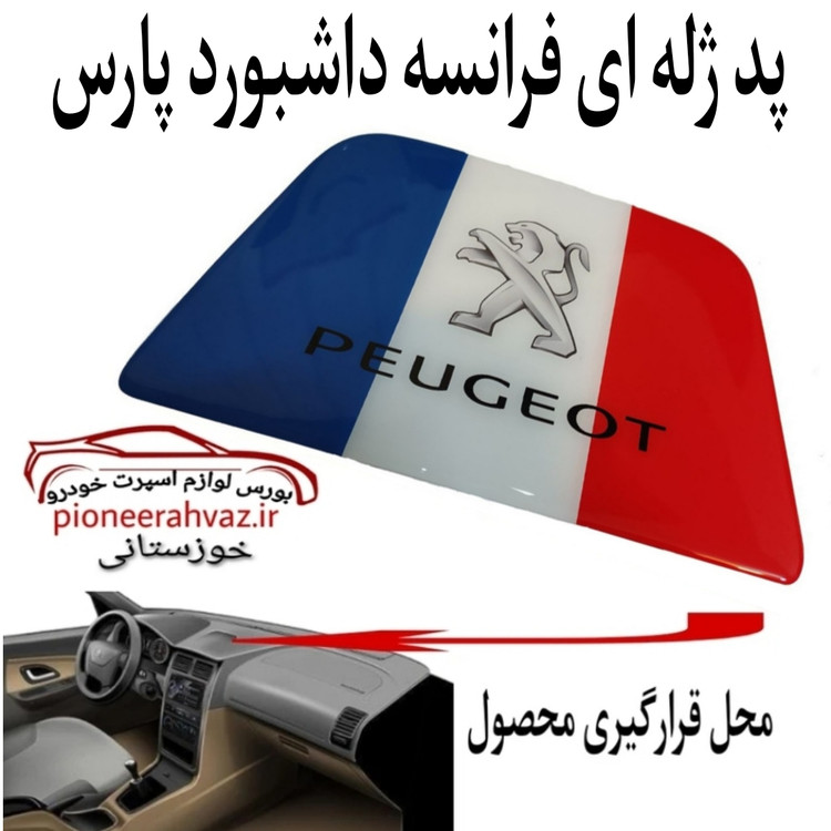 خودرو: پژو پارس و ۴۰۵ داشبورد جدید متریال: ژله ای رنگ: پرچم فرانسه براق دارای چسب جهت نصب محل نصب: داشبورد پژو پارس قابل استفاده میباشد