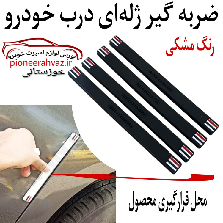مدل ضربه گیر مشکی با هاشور سفید از جنس مواد نرم و منعطف ژلاتینی تولید شده است که کاملا منعطف است. این مدل به همراه چسب دو طرفه مخصوص نصب در پشت آن روی درب های خودرو نصب میشود.