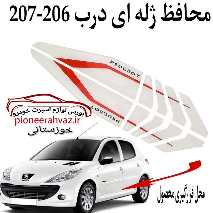 محافظ درب آرسی مناسب پژو 206-207: این محافظ برای 4 درب خودرو طراحی شده که برای درب های جلو از برخورد و خط و خش جلوگیری میکند، برای درب های عقب فقط جنبه تکمیلی طرح را دارد.