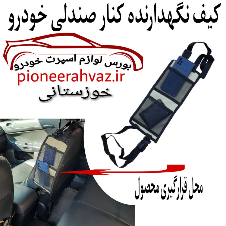نظم دهنده کنار صندلی خودرو چند منظوره: جنس: پارچه ای اسپان باند - ابعاد در حالت باز: 24 × 24 × 35 سانتی متر - وزن: 88 گرم - تعداد کل محفظه ها: 2 عدد - تعداد جیب: ۲ عدد - دسته برای حمل: ندارد - قابلیت تاشو: دارد