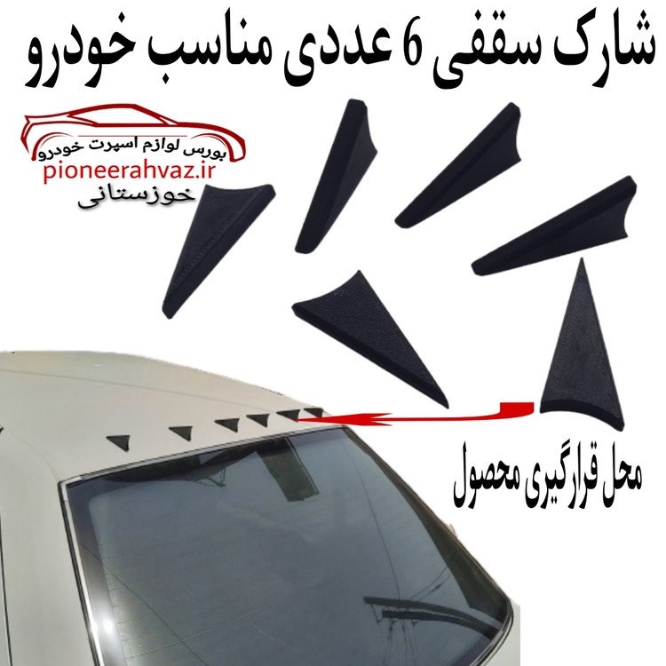 شارک سقف خودرو 6 عددی وسیله ای تزیینی برای اسپرت خودرو به شمار میآید که البته کارایی اصلی این محصول، تاثیر در بهبود بخشیدن پایداری لاستیک، بر روی زمین است.