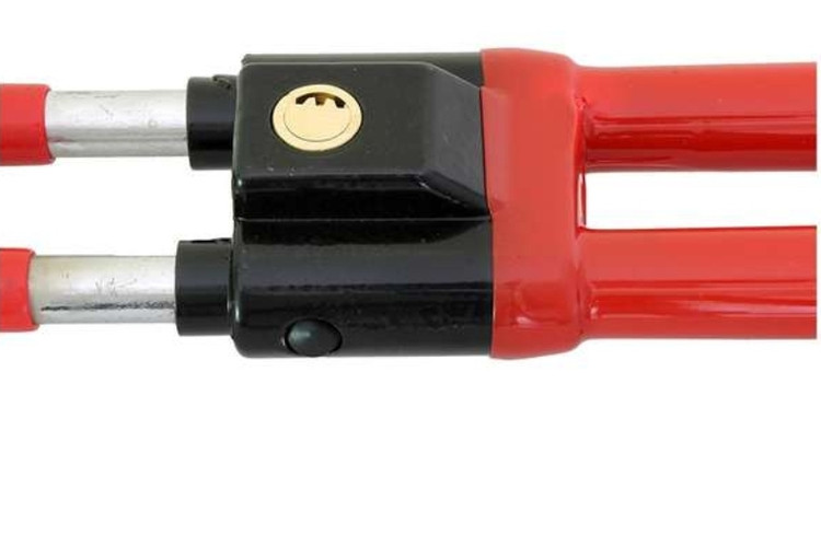 بدون شک از قوی ترین و سنگین ترین مدلهای قفل های ایمنی خودرو، قفل فرمان دوبل دسته دار خودرو می باشد که از آلیاژ فولادی بسیار مستحکم ساخته شده و با دو میله موازی از خودرو محافظت می کند. روی این قفل فرمان ضد برش، روکش PVC کار شده تا هم ظاهر بهتر و شیکی داشته باشد و هم در هنگام تابش آفتاب و یا سرمای هوا، بتوان به راحتی با آن کار کرد. یک دسته پلاستیکی نیز در ابتدای قفل فرمان دوبل تعبیه شده که کاربری و استفاده از آن را بسیار ساده می کند.