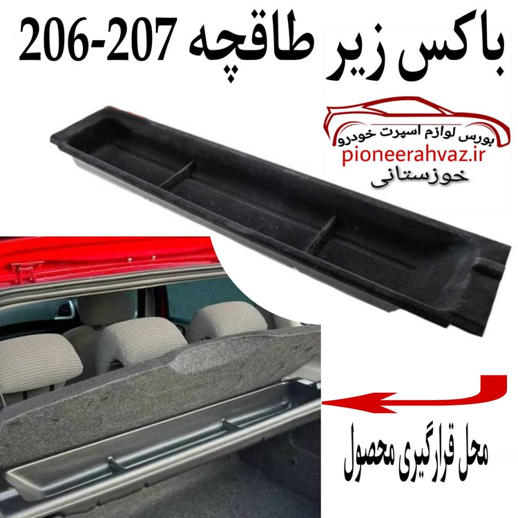 باکس زیر طاقچه پژو 207 فروشگاه پایونیر اهواز از متریال درجه یک ساخته شده است و برای نصب نیازی به برش سوراخکاری و یا حتی استفاده از چسب ندارد. از این محصول میتوانید برای نگهداری لوازم مختلف مانند جعبه ابزار، کیف، لوازم مسافرت و یا گردش استفاده نمایید. این محصول فقط برای پژو 206 هاچبک و 207 قابل نصب می باشد.