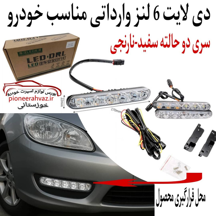 ساخت: چین مدل: رانینگ ولتاژ: 12 نوع لامپ: Power LED تعدادلامپ: 6LED رنگ: راهنما (پرتغالی) – دی لایت (سفید) شاسی: کریستالی