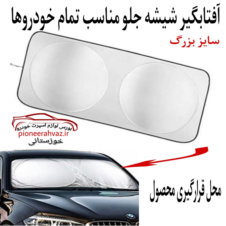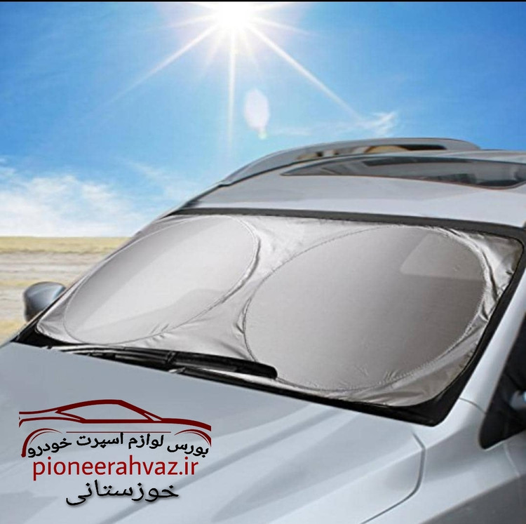 آفتابگیر شیشه جلو یکی از لوازم جانبی پرکابرد خودرو محسوب می شود، که با قابلیت جذب گرما از تابش مستقیم نور خورشید به درون ماشین جلوگیری می کند و در نتیجه گرمای کمتری در خودرو به وجود می آید. از آفتابگیر شیشه جلو خودرو مدل عینکی اغلب در فصل های گرم سال استفاده می شود، که می توانید آن را به آسانی از داخل خودرو پشت شیشه جلو قرار دهید. در فصول سرما و بارش برف نیز می توان آن را روی شیشه قرار داد تا به راحتی جمع شدن برف روی آن جلوگیری کرد.