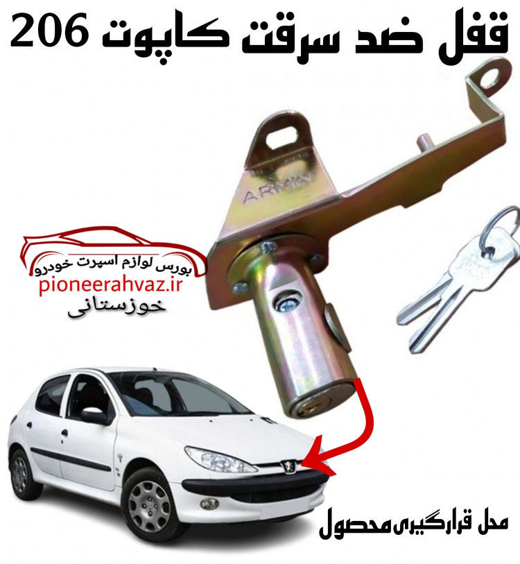 قفل کاپوت ضد سرقت : افزایش امنیت خودروقابل استفاده روی پژو 206جنس قفل کاپوت فلز مقاوم محصول شرکت ارمین نصب سریع و راحت