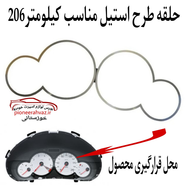 حلقه استیل قاب کیلومتر ۲۰۶ باعث افزایش زیبایی ظاهر کیلومتر شمار و اسپرتی کابین خودروی شما می شود و دارای روکش آب کاری شده کروم می باشد.