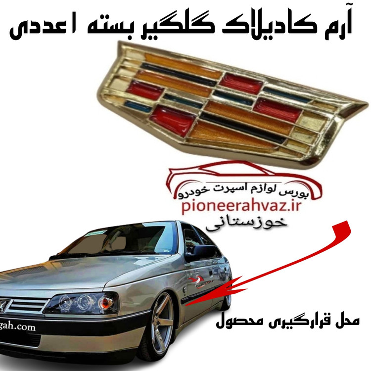 آرم کادیلاک فلزی درجه1: آرم کادیلاک فلزی چسب دار دارای جای پیچ مهره برای نصب با پیج جلو پنجره فلزی با روکش کروم براق ابعاد: ۹ * ۳.۵ سانتی متر