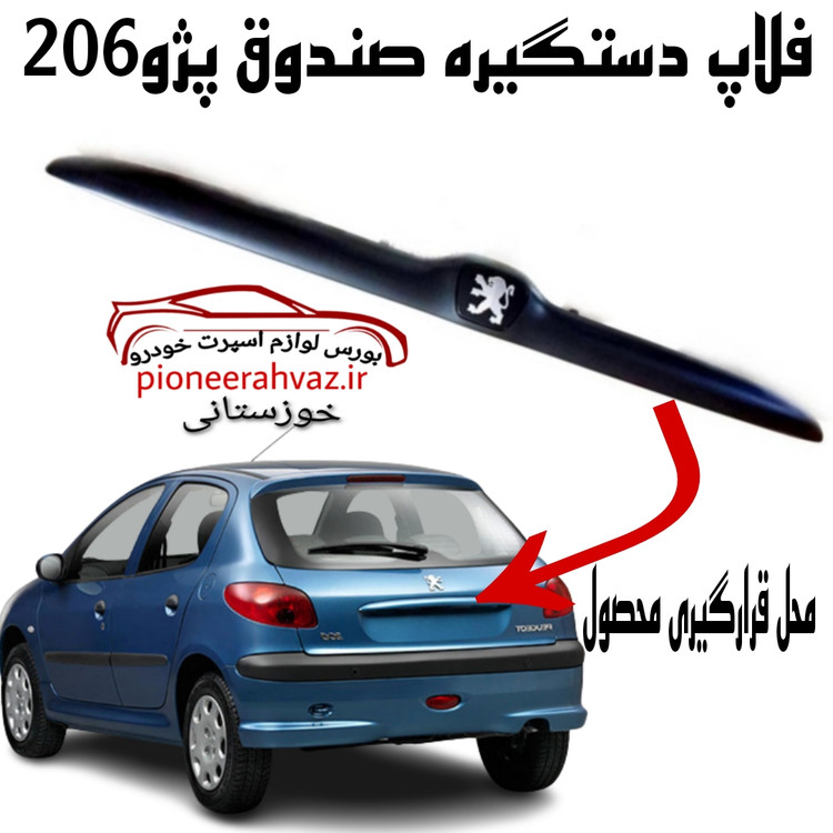 فلاپ دستگیره صندوق ۲۰۶ : قابل استفاده روی پژو 206 هاچ بک دارای آرم پژو برجسته مواد اولیه با کیفیت رنگ مشکی (قابلیت رنگ پذیری