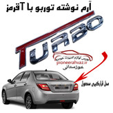 آرم نوشته توربو با T کشیده مناسب انواع خودرو ( Turbo emblem car ) جنسی فلزی دارد که از مواد درجه یک تهیه شده است .
