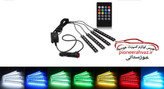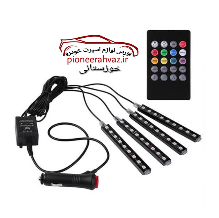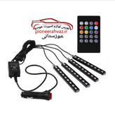 کیت نورپردازی ریموت دار داخل خودرو در زیر داشبورد و صندلی های جلو نصب میشود که حالت های مختلف رقص نور و رنگ آن را کنترل می نمایید. ویژگی شگفت انگیز آن سنسور صدا می باشد که با قرار گرفتن نزدیک بلندگوی خودرو، هماهنگ با موزیک، رقص نور دارد. (با صدا تغیرر رنگ میده)