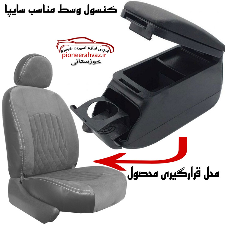 این کنسول وسط دارای دو جا لیوانی می باشد که در جلو و عقب آن به صورت کشویی باز و بسته می شوند. کنسول وسط پراید و تیبا یک برند MP همراه با دو پایه و پیچ های مورد نیاز می باشد. رویه ی درب آن به سمت جلو قابل تنظیم است تا به عنوان تکیه گاه و استراحت دست راننده عمل کند. همچنین با باز کردن این کنسول جای مدارک را می توانید مشاهده کنید. درب آن از فوم طرح چرم تولید شده تا ظاهری زیبا و هماهنگ با داخل کابین داشته باشد. محفظه داخلی کنسول فضای کافی برای وسایل اضافی را دارد و با کمک آن داخل خودرو منظم تر می شود.