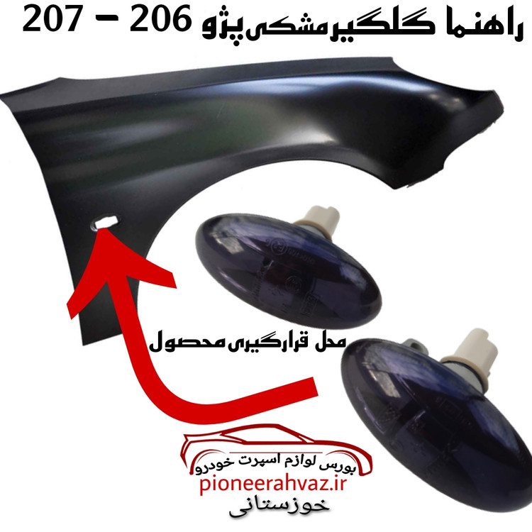 این راهنما رو گلگیر اسپرت در سه رنگ نارنجی، سفید و مشکی تولید شده و بر روی پژو ۲۰۷ و ۲۰۶ قابل نصب می باشد. طلق کار شده در این راهنما گلگیر شفاف و بسیار شیک، از جنس pmma بوده که کیفیت آن از سایر راهنما گلگیرهای دیگر ۲۰۶ و ۲۰۷ بالاتر است. نصب این راهنما بغل گلگیر بسیار ساده می باشد، کافیست داخل آن لامپ قرار داده و خار سوکت آن را جا بزنید.