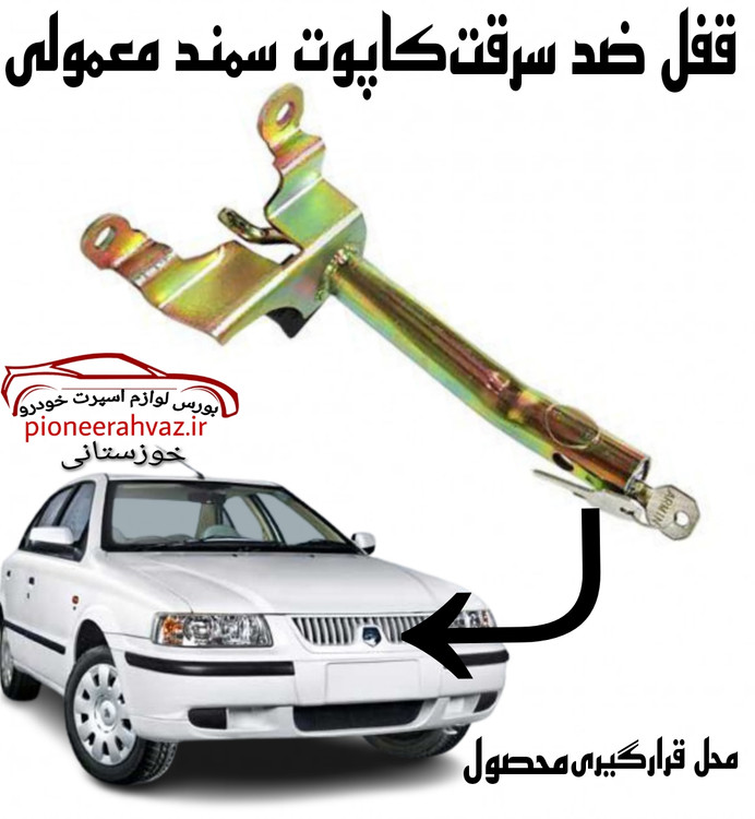 باطری، ECU و جعبه فیوز در خودرو قطعاتی ارزشمند و مهم هستند که وجودشان در اتومبیل امری ضروریست و محافظت و تامین امنیت آنها نیز باید جزو اولویت های مالکان باشد. برای جلوگیری از به سرقت رفتن قطعات زیر کاپوت استفاده و نصب قفل کاپوت راه حلی مطمئن و کاربردی است. این قفل به شما کمک می کند تا قطعات خودرویتان در امنیت بیشتری قرار بگیرند و به دلیل صرف مدت زمان بیشتری برای باز کردن آن سارقان از این کار منصرف شوند. قفل کاپوت سمند معمولی از فلز مقاوم ضد زنگ ساخته شده است و همراه با دو عدد کلید کامپیوتری می باشد.