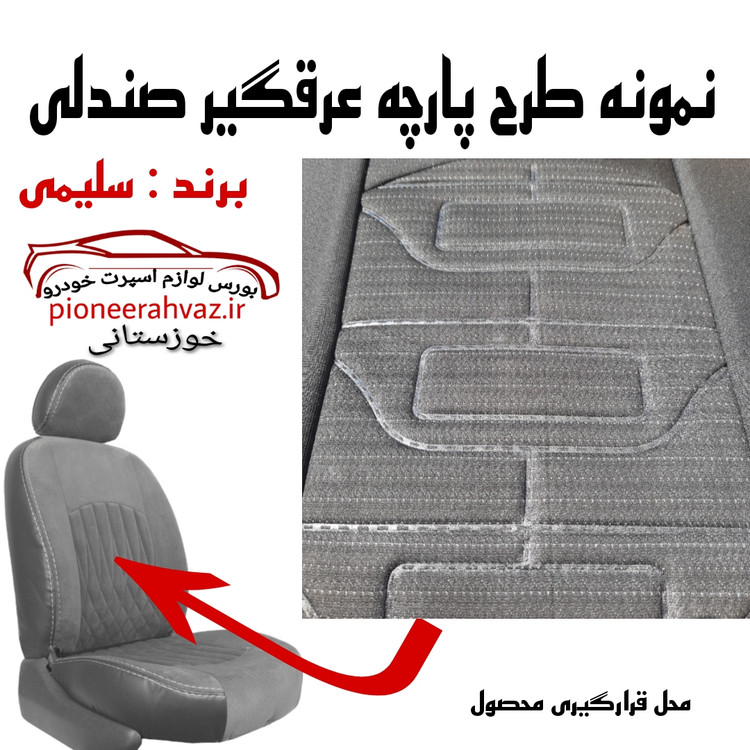 پارچه اعلا که قابلیت تهویه هوا دارد . دارای گلدوزی دارای لایه موکت در پشت جهت مقاومت بیشتر دارای چند کش با قفل در پشت جهت محکم شدن روی صندلی همراه با سر صندلی . نصب آسان قابل شستشو .
